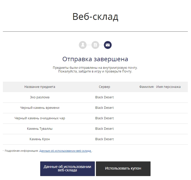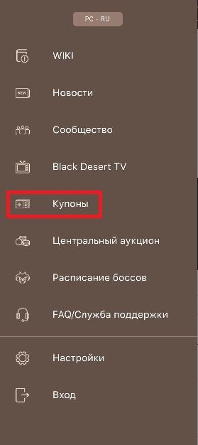 - В приложении Black Desert+ в меню [Купоны]